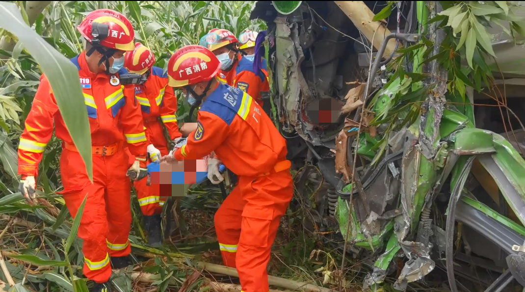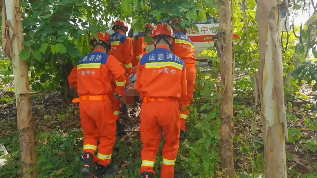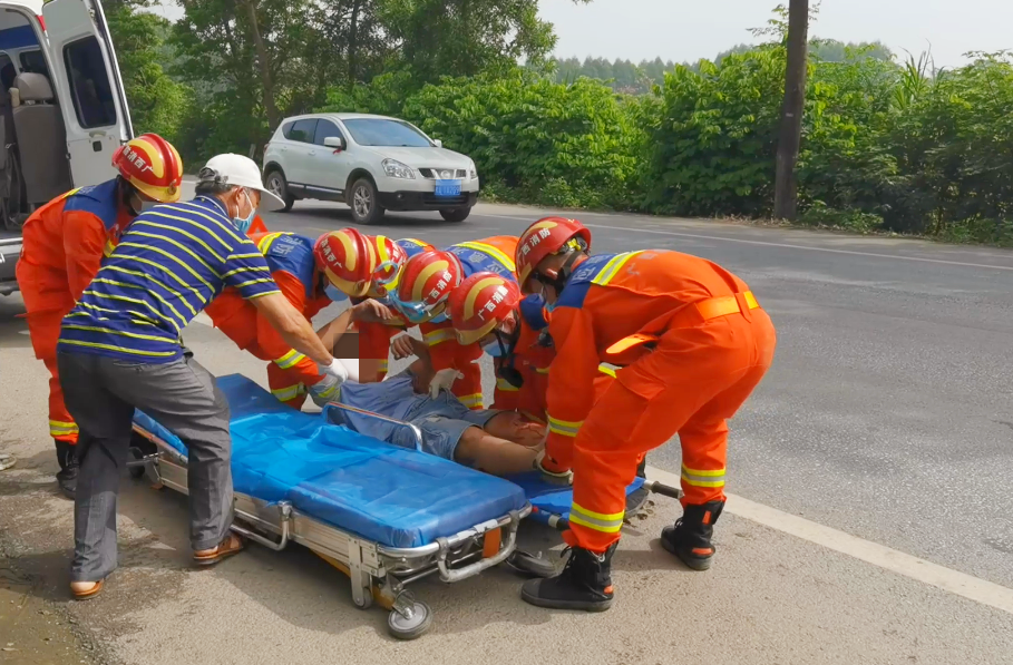 将受伤驾驶员抬出