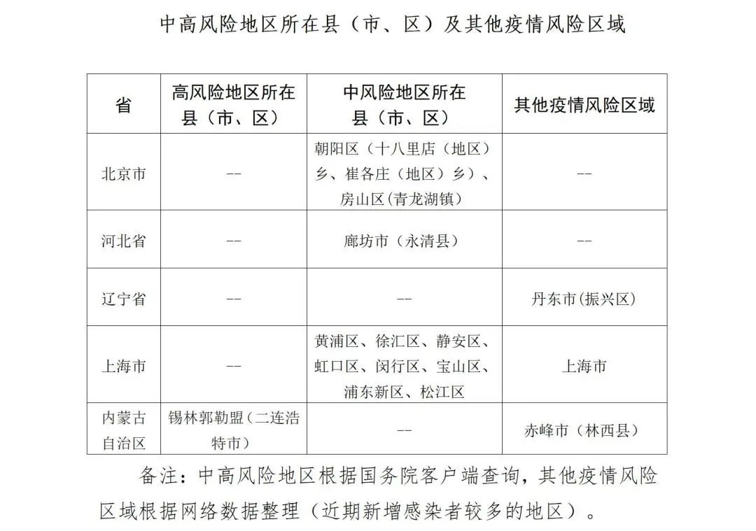 备注:已公布的中高风险区所在县(市、区),不再逐一列举轨迹涉及的具体地点