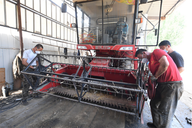 据了解,今年景县将投入1700余台小麦联合收割机。为保障“三夏”期间农机化生产顺利进行,景县农业部门提前对全县农机具及小麦机收情况进行了摸排,组织维修技术人员对全县小麦联合收获机、玉米播种机、拖拉机及配套机具进行检修和调试,确保作业机具状态良好。