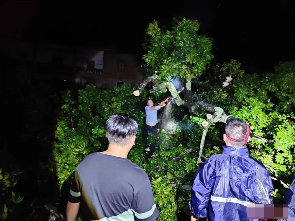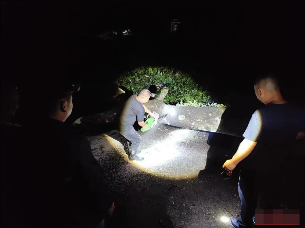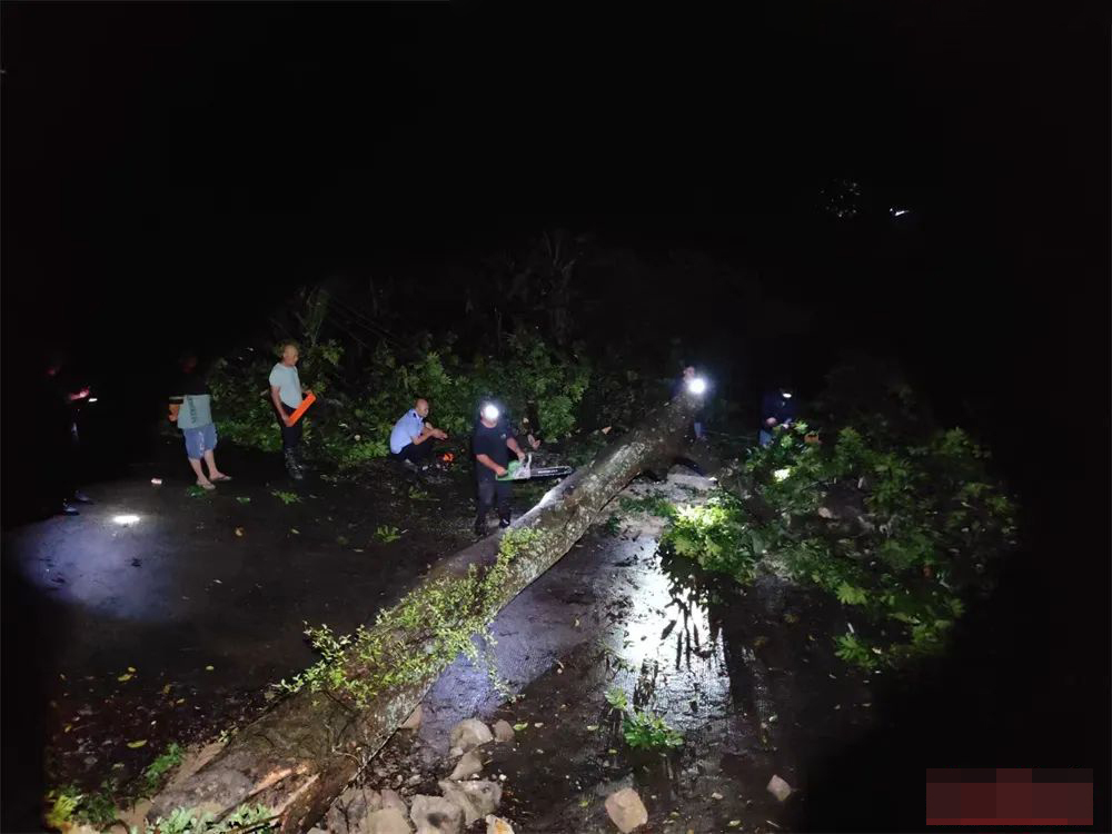 兰玉立即上报镇防汛应急队伍。接到报告后,该镇立即组织镇村干部、供电所等部门工作人员,赶往现场处置,清理倒伏的大树。一到现场,大家便火速分工合作:供电技术人员立即切断电源,镇村干部一边维持现场秩序、疏导交通、设置路障,提醒来往车辆减速慢行;一边切锯这棵倒地拦路的树木,搬离清理、消除隐患。