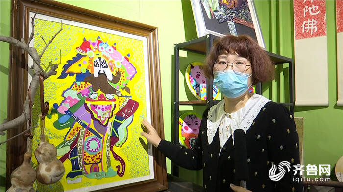 寿光市布贴画非遗传承人赵敏告诉记者,以前有地方破了,觉得补丁不好看,可以做一个吉祥的图案,比如说老虎、蝙蝠、福字之类的,把布和刺绣结合起来。赵敏拿起一幅作品向记者介绍,荷花的寓意非常好,谐音是“和”。这幅作品做出国画的感觉,像毛笔一样起笔、顿笔,这种变化让人感觉到非常的灵动。还有一副就地取材,用手工布做成的杨家埠年画里的门神,色彩艳丽,十分好看。
