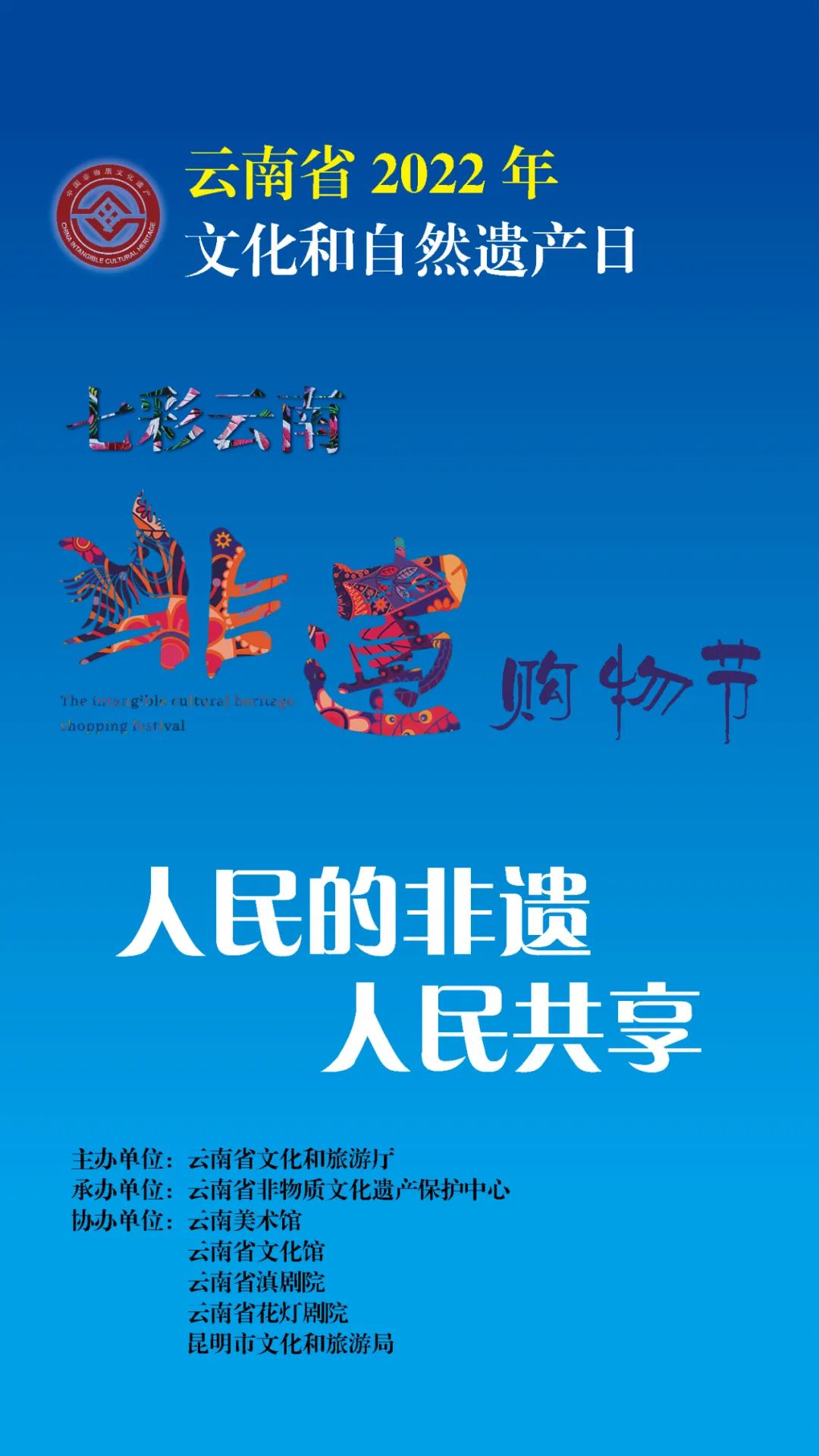 “连接现代生活 绽放迷人光彩”。6月11日是 2022年“文化和自然遗产日”,为广泛挖掘与宣传非遗助力乡村振兴的典型实践,拉动文旅消费,促进非遗企业拓销增收,展现非遗在融入现代生活、满足人民群众对美好生活的向往、铸牢中华民族共同体意识中发挥的积极作用,激发全社会的文化自信和文化自豪感,营造全民积极参与非遗保护传承实践的浓厚氛围,云南省文化和旅游厅会同阿里巴巴将于6月10日-23日在淘宝网举办淘宝手艺人——“云南非遗购物节”专场推介活动,让广大市民群众足不出户即可感受非遗魅力,共享非遗保护成果。