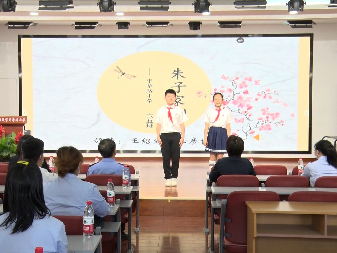 仪式结束后,该校学生登台,现场诵读《木兰辞》、《木头城的音乐》、《朱子家训》等经典作品,以童音真情弘扬书香魅力。随后,区委宣传部、区市场监管局、区教育和体育局向中华路小学捐赠图书325册、绿书签500枚、宣传彩页500张,助力打造阅读氛围浓厚的书香校园,让书香流淌在校园的每个角落。