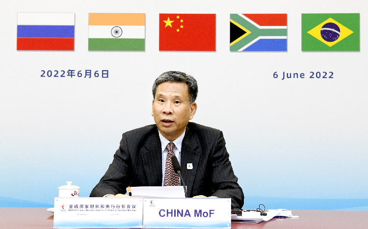 2022年6月6日,中国担任金砖国家主席国期间的第二次金砖国家财长和央行行长会议以视频形式举行,会议由财政部部长刘昆和人民银行行长易纲共同主持。会议围绕今年领导人会晤“构建高质量伙伴关系,共创全球发展新时代”的主题,就宏观经济形势和政策协调、新开发银行、基础设施投资、金砖财金智库网络等议题进行了讨论。此次会议是金砖国家领导人第十四次会晤(以下简称领导人会晤)前的最后一次财长和央行行长会议,会议就今年金砖国家财金合作成果达成共识。