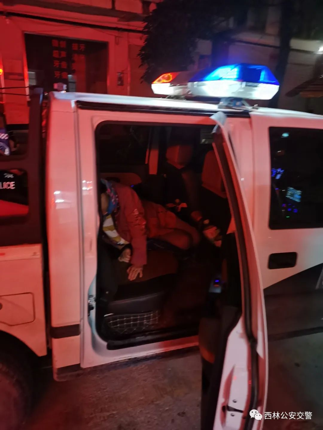 6月9日晚,百色市西林县公安局交通警察大队事故中队民警紧急护送一名产妇平安就医。