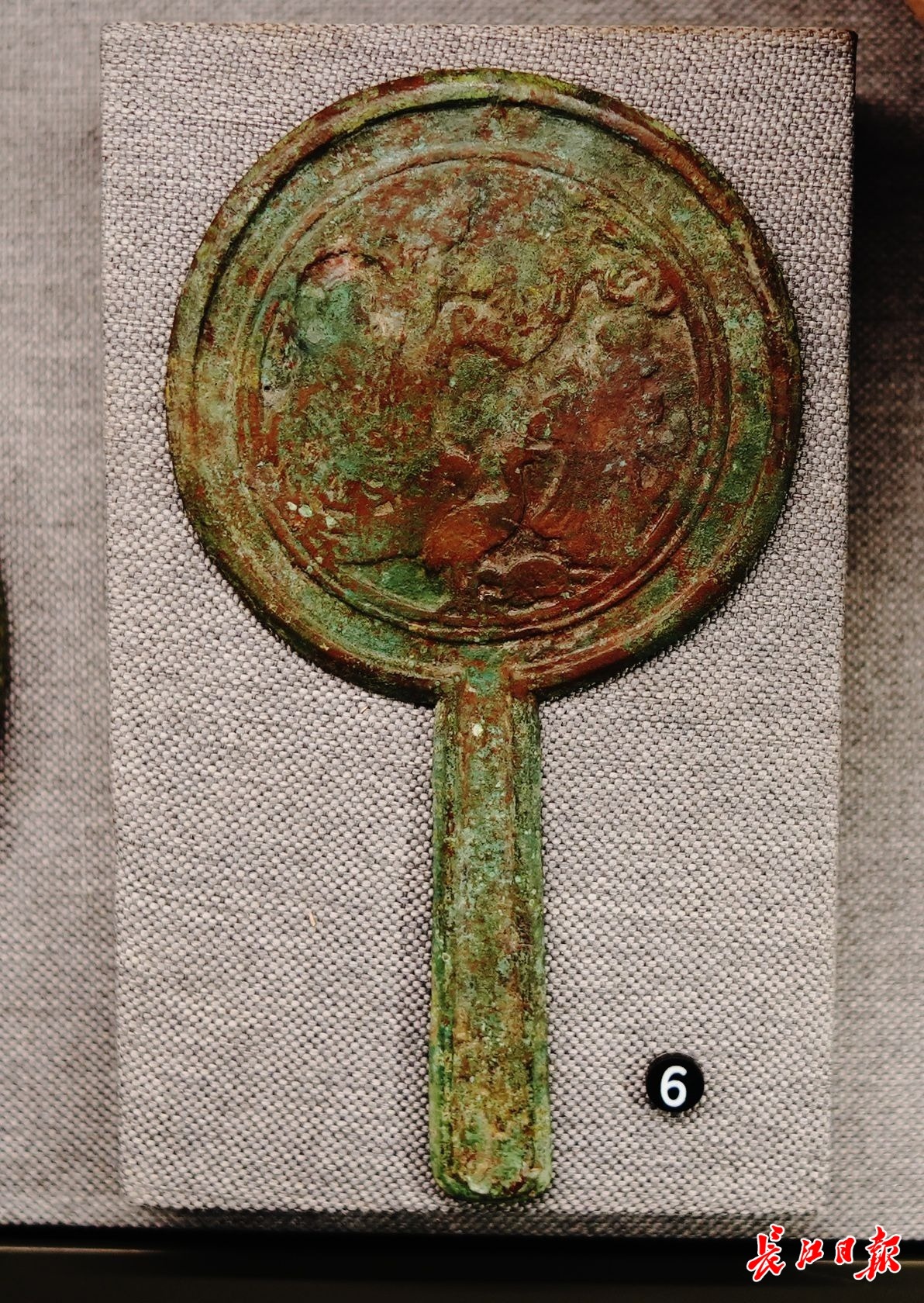 龟鹤齐寿仙人图像铜镜。 记者何晓刚 摄