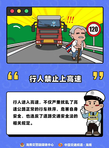 行人上高速危害性大,特别是夜晚、雨天等情况下,驾驶人视线受到环境影响极其容易造成交通事故。一方面,行人的安全得不到保障,另一方面,影响在高速公路上行驶的车辆。