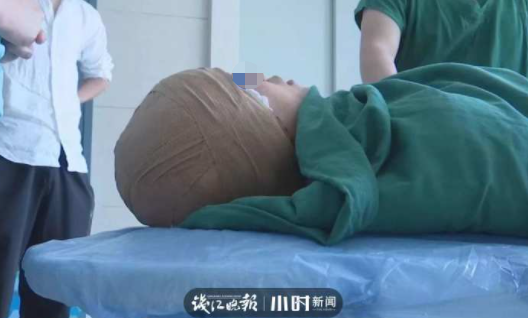 取皮术完成后,植皮术立即进行。这台手术进行了长达6个小时。小时新闻记者从东部战区海军医院了解到,这是舟山市首例直系亲属皮肤捐赠自、异体皮混合移植。医生介绍说,手术中不仅使用了王大伯女儿的头皮,也使用了王大伯自身肚皮上没有被烧伤的部分皮肤。