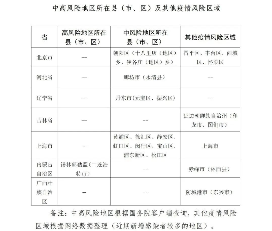 备注:已公布的中高风险区所在县(市、区),不再逐一列举轨迹涉及的具体地点。