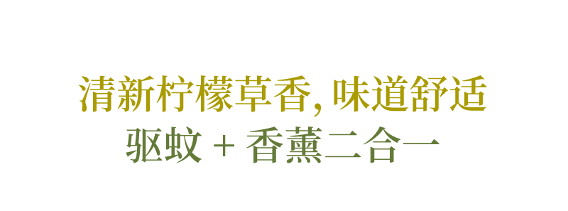 这种独特的香氛花草香味,不仅可以有效驱蚊,还有这独特的芳疗净化效果,可以有效净化空气中有害气体和细菌,改善空气质量,去除房间异味,让人舒心。