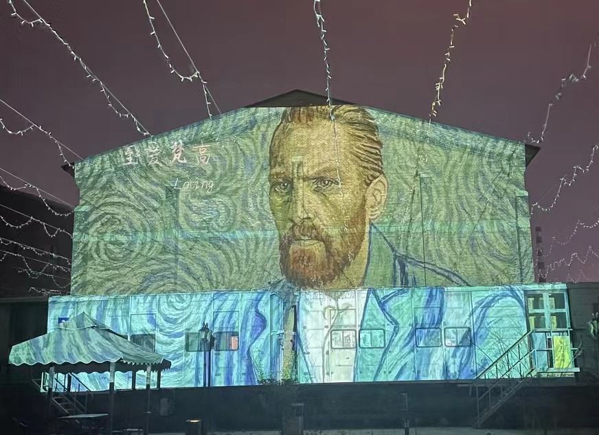 巨大旋转扭曲的蓝色星云、标志性的橙黄色明月、一团团夸大的星光……在沈阳市铁西区的奉天工场平台式融合工业园的一场投影秀中,荷兰画家梵高的作品通过3D投影技术投射到老旧的红砖厂房外侧,吸引大量游人到此“打卡”。