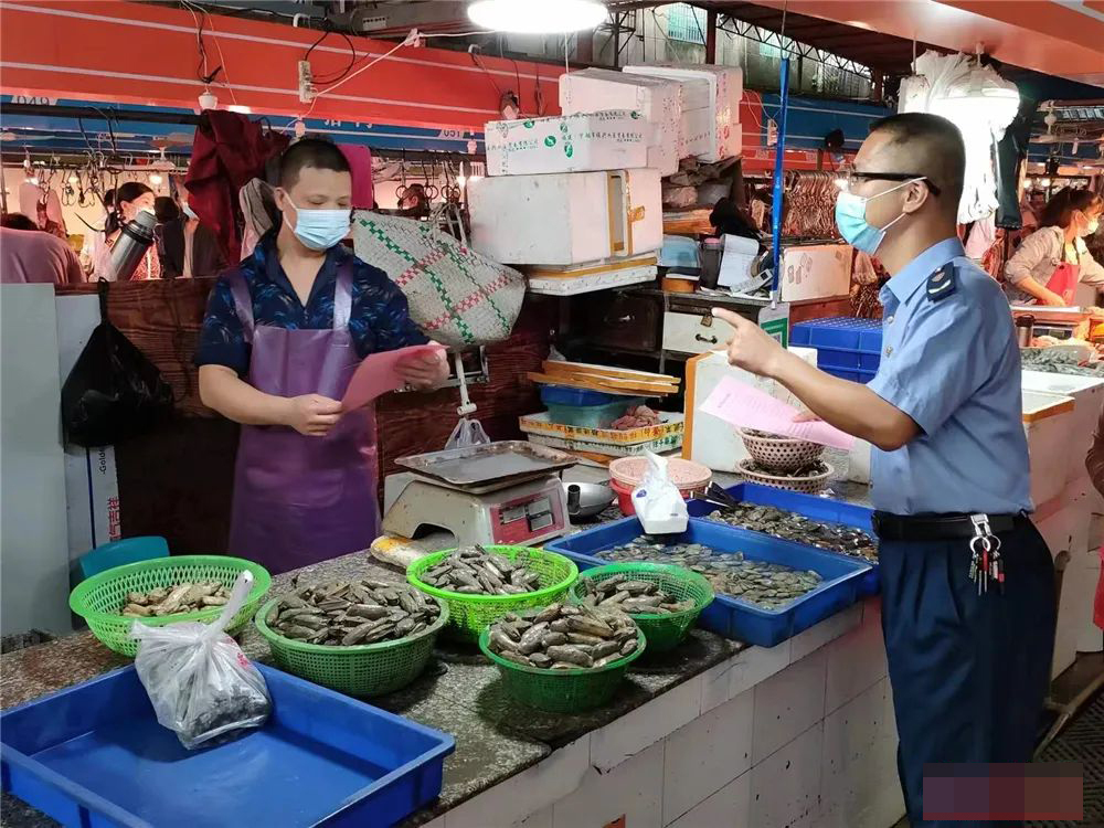 此次宣传活动,以天九湾市场水产品经营户为主,工作人员向经营户分发宣传材料,讲解织纹螺、贝类毒素等的危害及特征,并加强对经营户的监督检查。同时在农贸市场出入口等人流量较大的地点张贴宣传海报,以此提醒广大消费者,切勿购买食用织纹螺、贝类毒素。