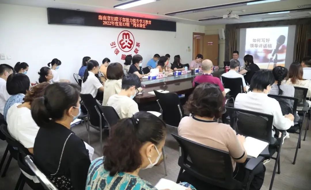 为扎实开展好“能力提升建设年”活动,提高机关干部公文写作水平,6月10日,省妇联举办第13期“周末课堂”,邀请省委政策研究室党建研究处处长李晓彬为机关干部职工作公文写作能力提升专题授课。省妇联主席陈健娇、副主席林英姿、一级巡视员杨翠霞、二级巡视员杨娟出席。