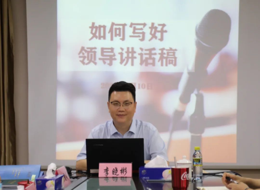 李晓彬处长是省第八次党代会报告主要起草者,有丰富的写作经验,此次选取如何写好领导讲话稿这个专题与大家分享交流。他从怎样看待领导讲话稿、领导讲话稿有哪些特点、写好领导讲话稿的关键、起草领导讲话稿的基本方法和步骤、领导讲话稿怎么“出新”“出彩”五个方面,详细介绍了如何写好领导讲话稿的方法和技巧,条理清晰,还列举了大量的实例,内容深入浅出,具有很强的指导性、实践性。