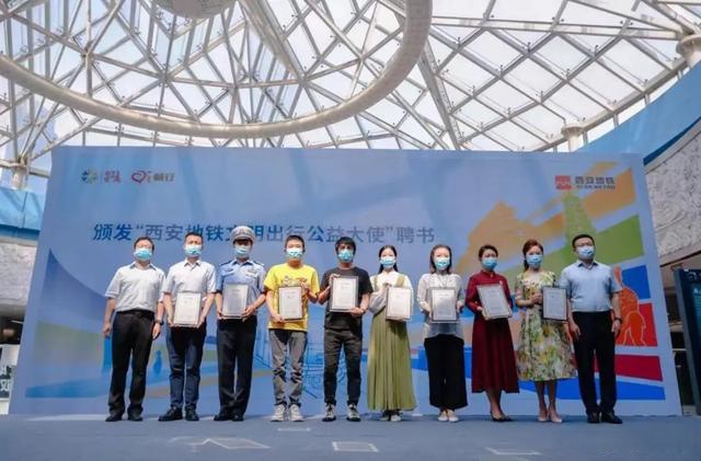图 | 为西安地铁首批“文明出行公益大使”颁发聘书。