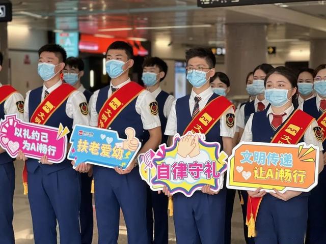 服务品牌推介活动结束后,公益大使们带领“小小志愿者”,在地铁车站开展形式多样的文明出行志愿服务,引导乘客共同感受文明温度、传递文明之美。