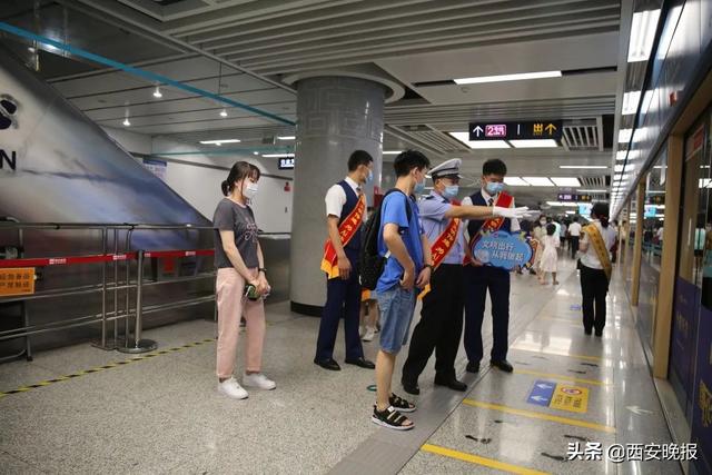 图 | 活动现场,西安地铁志愿者开展文明出行志愿服务活动。