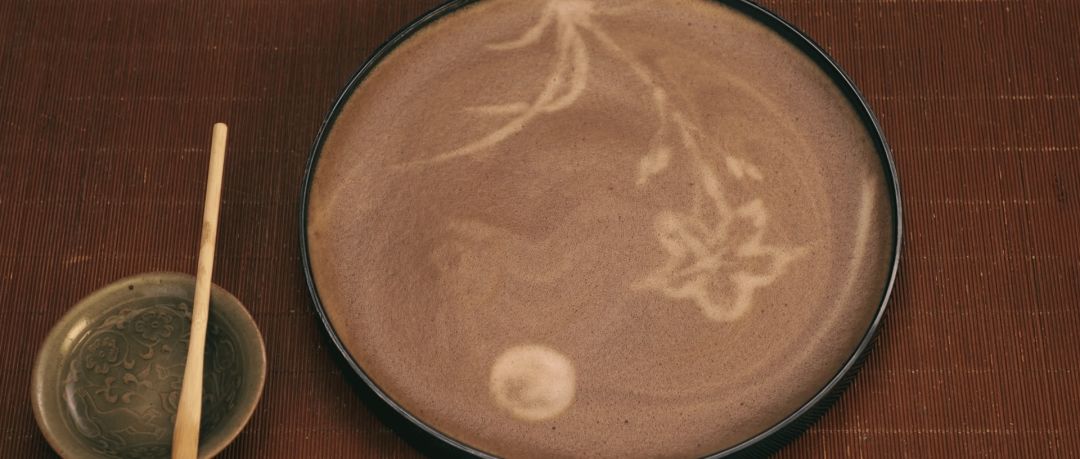 用小茶勺轻轻蘸点水,就可以在茶汤上勾画出各种图案。或是寂寂小亭,三两桃花,或是鸟兽虫鱼,山水人物……但是很快就消逝不见了。