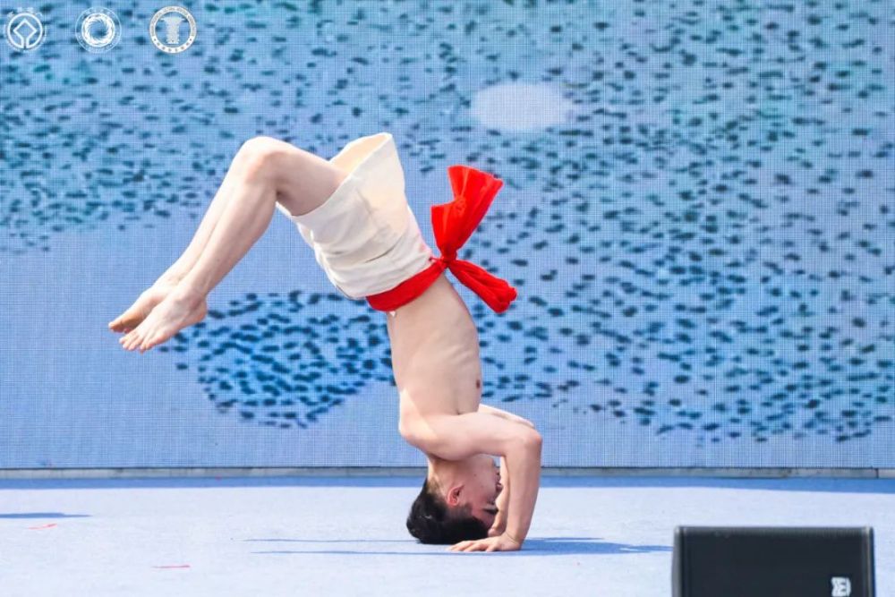 修复后的28号陶俑呈现独特的仰卧姿态,为了更好地认知这件陶俑,保护修复人员通过三维扫描技术全方位模拟其形态特点,因为百戏俑象征着秦代宫廷娱乐杂技活动,此次秦陵博物院特别邀请陕西省杂技艺术团有限公司,一同对28号俑的姿态进行了讨论与研究,并在此次遗产日活动上进行了真人模拟展示,力求再现秦时代宫廷百戏娱乐的场景,展现出中华文化的艺术之美和发展传承。