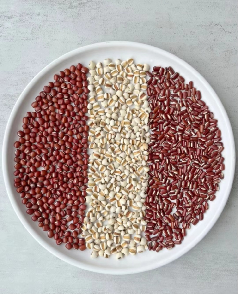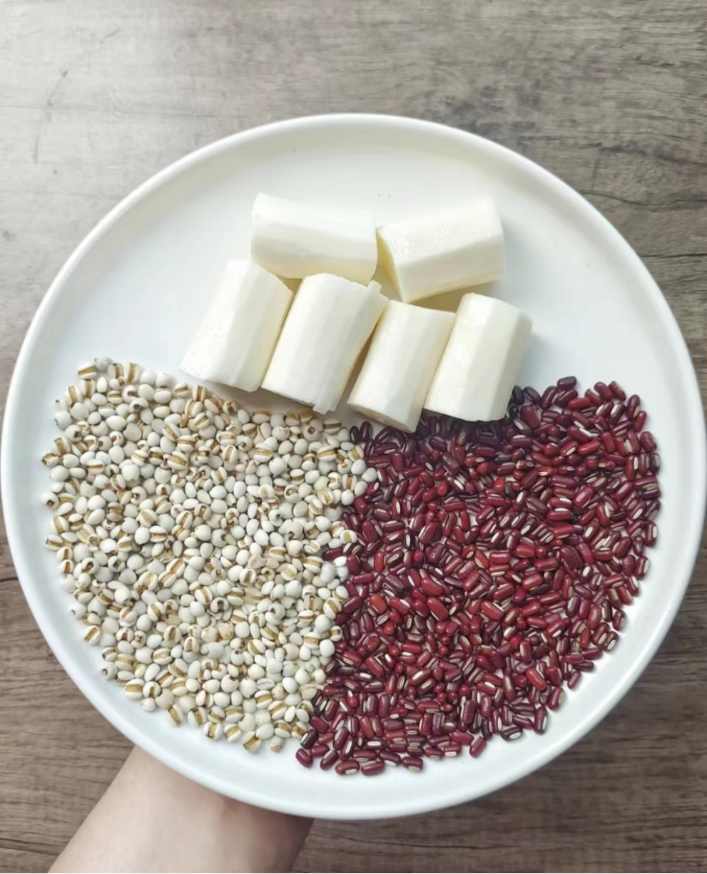 食材明细:选购红豆80克左右(红豆是一种常见的主要粮食,南方人喜欢用来煮粥或煮汤,红豆的铁元素和营养价值颇丰,具有补气活血,调理脾胃功能的作用,女性朋友要多吃红豆),赤小豆30克左右,优质薏米30克,山药300克左右(山药是餐桌上的食材之一,嫩山药可以用来素炒,粗一些的山药适合炖汤或煮粥,具有健脾祛湿,为身体补充一些营养),适量清水,少许冰糖,陈皮12克,其他。