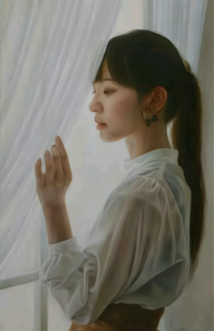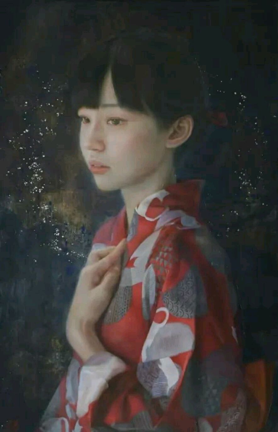 毕竟油画是为了表现美的,一些不美的可以美化,但是这位日本画家展现出了女人的侧脸,是最佳的视觉效果,也是为了营造“好奇感”。