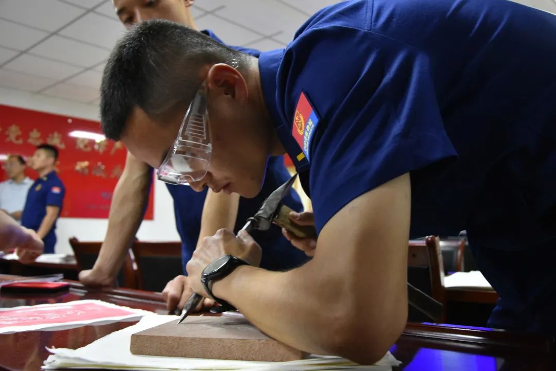 课堂上老师用PPT的形式从文化遗产的概念、北石窟寺的概况、北石窟寺保护历程、北石窟寺价值及研究成果、北石窟寺文化弘扬五个方面为全体消防救援人员深入浅出、通俗易懂的阐释了石窟文化的博大精深。随后老师向全体消防救援人员展示了制作精美的人物拓本和石雕艺术,同时老师邀请每一位队员制作了一份人物拓本或石雕,使全体队员更加深刻的了解了文物保护工作的重要性。