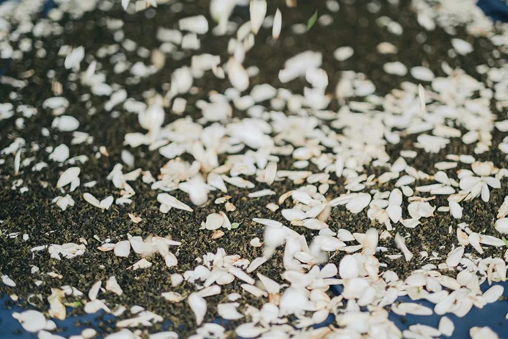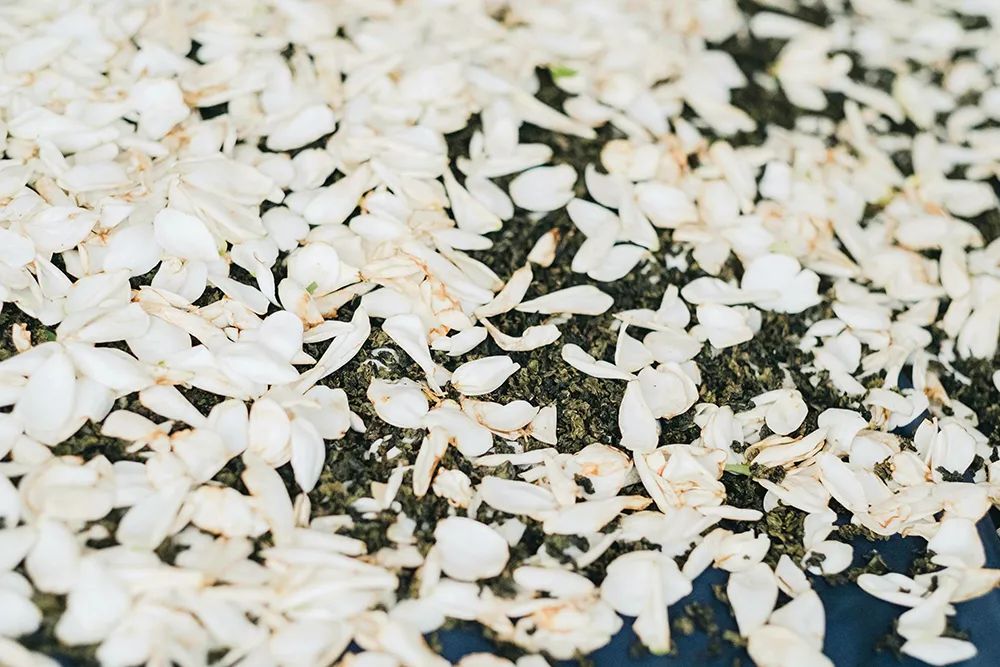 遵循传统工艺进行窨制, 铁观音一层,栀子花一层,新花与陈茶、新香与陈香的碰撞。