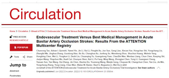 近日,由中国科大附一院(安徽省立医院)神经内科胡伟主任团队牵头,全国48家卒中中心参与的ATTENTION登记研究项目新进展在Circulation杂志发表。