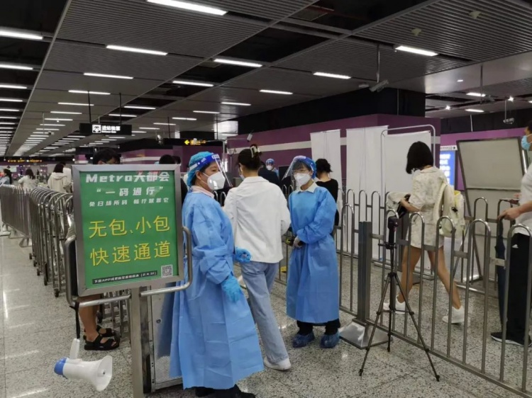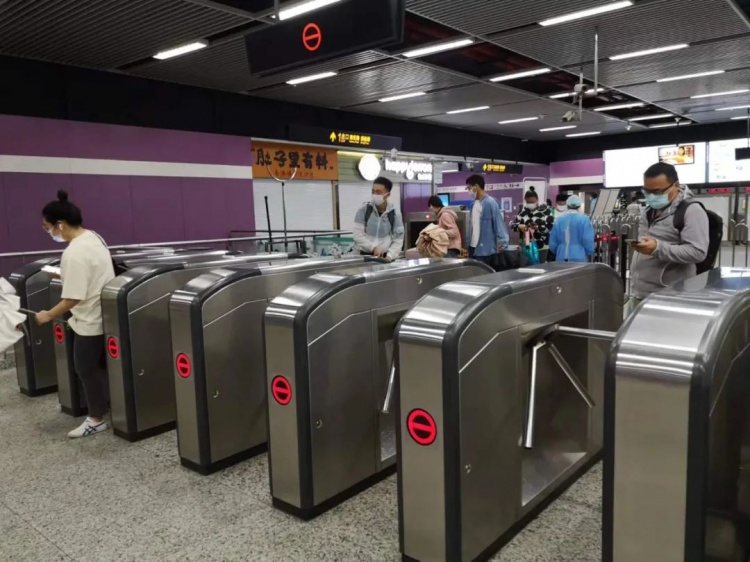 为了扩大知晓率,车站在“无包、小包绿色通道”边上,增设了告示牌,引导使用“一码通行”的无包、小包乘客走此绿色通道。同时,通过喇叭循环播放、现场人工宣传,引导更多使用Metro大都会“一码通行”的无包、小包乘客至该绿色通道处进站。在满足地铁防疫要求的基础上,提升进站通行能力,减少高峰时段乘客的过闸排队时间。