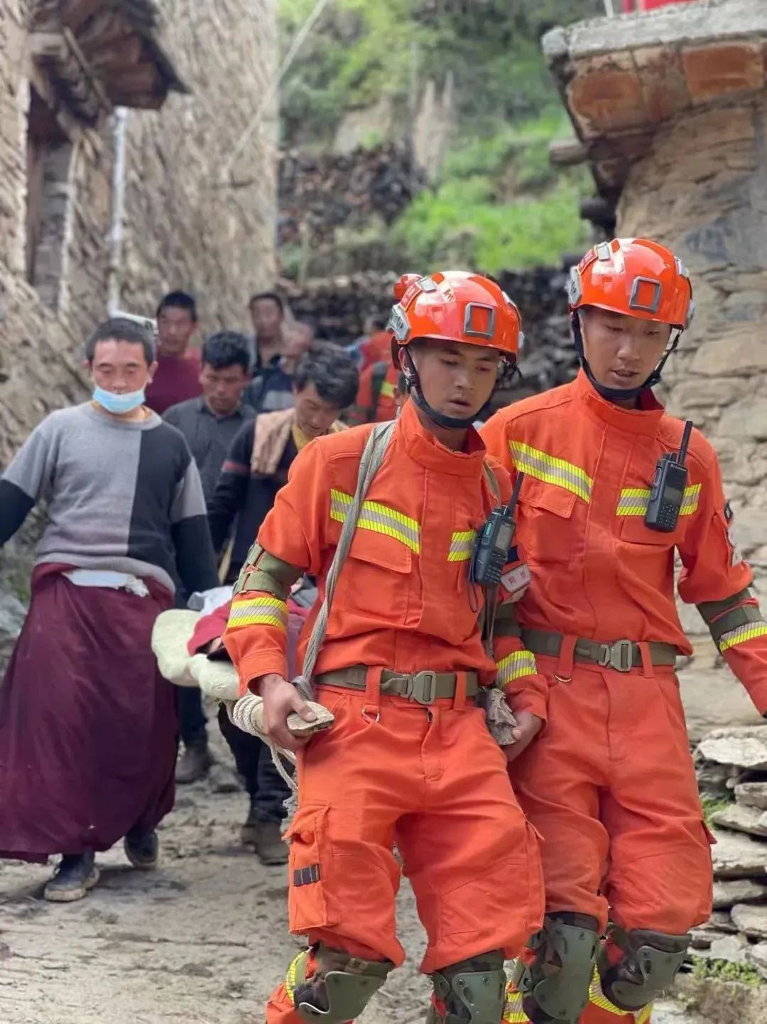 6月11日一早,阿坝森林消防支队派出救援组赶往震中草登乡斯拉尔底村实施救援。经过4个小时的徒步,中午12时许,救援人员终于抵达斯拉尔底村。在搜救过程中,救援人员发现了受伤不能动弹的村民仁卓。