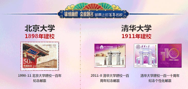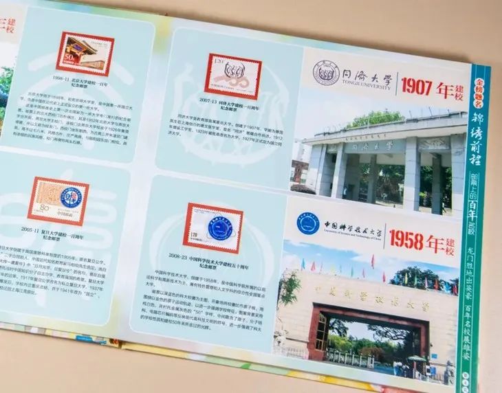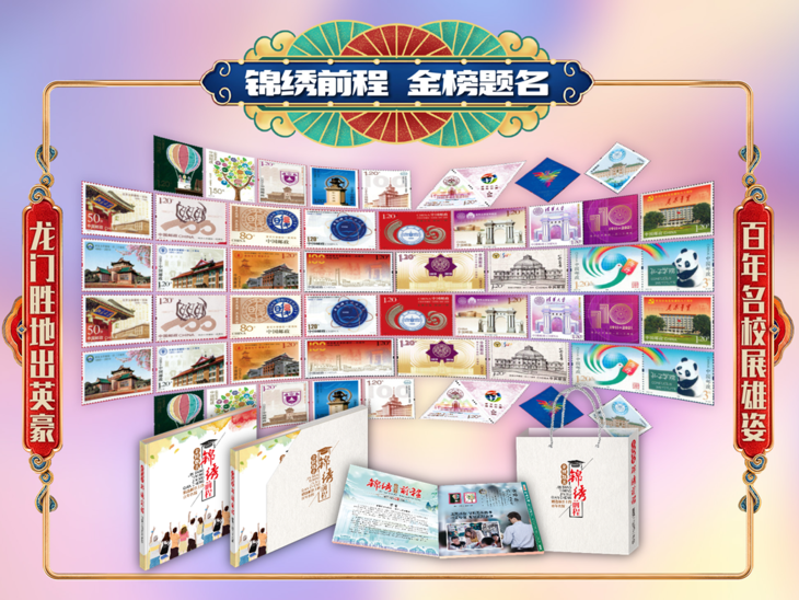 而《金榜题名•锦绣前程》珍邮册以百年名校为主题,将中国邮政发行过的所有中国百年名校校庆邮票集结成册。