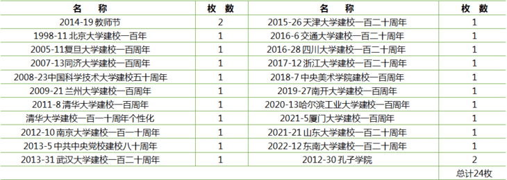 并且一般只有在校庆期间才会发行,也就是说一个高校也可能只发过一张邮票。