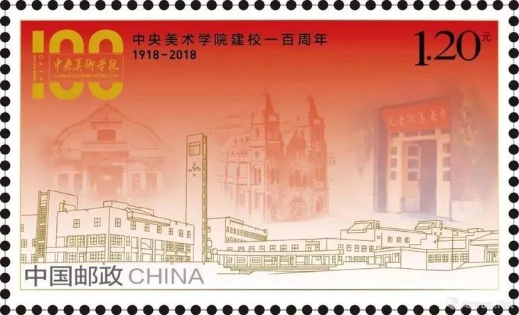 《中央美术学院建校一百周年》纪念邮票,一套一枚,面值120分。