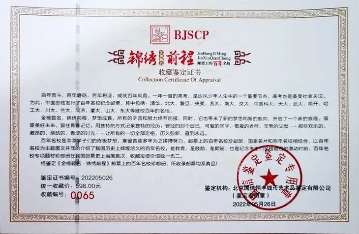 藏首藏全藏珍,《金榜题名•锦绣前程》珍邮册完全满足了收藏界的金科玉律,如此珍贵的名校邮票大全,自己收集耗时耗力,而在我们这里,一次集齐,超值超全!仅需298元!