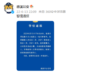 浙江慈溪发生一起刑事案件1人抢救无效死亡,警方:嫌犯被当场抓获