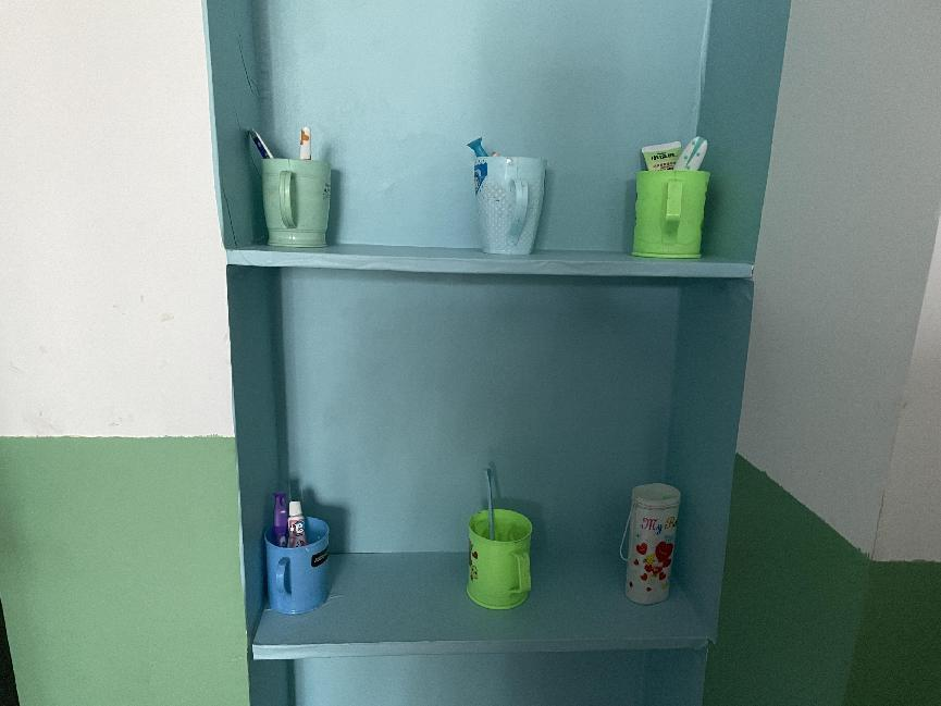 看,宿舍的物品摆放得多么整洁,毛巾摆放得整整齐齐,牙刷杯个个都像个“小士兵”,看得出每个孩子都养成了良好的生活习惯。