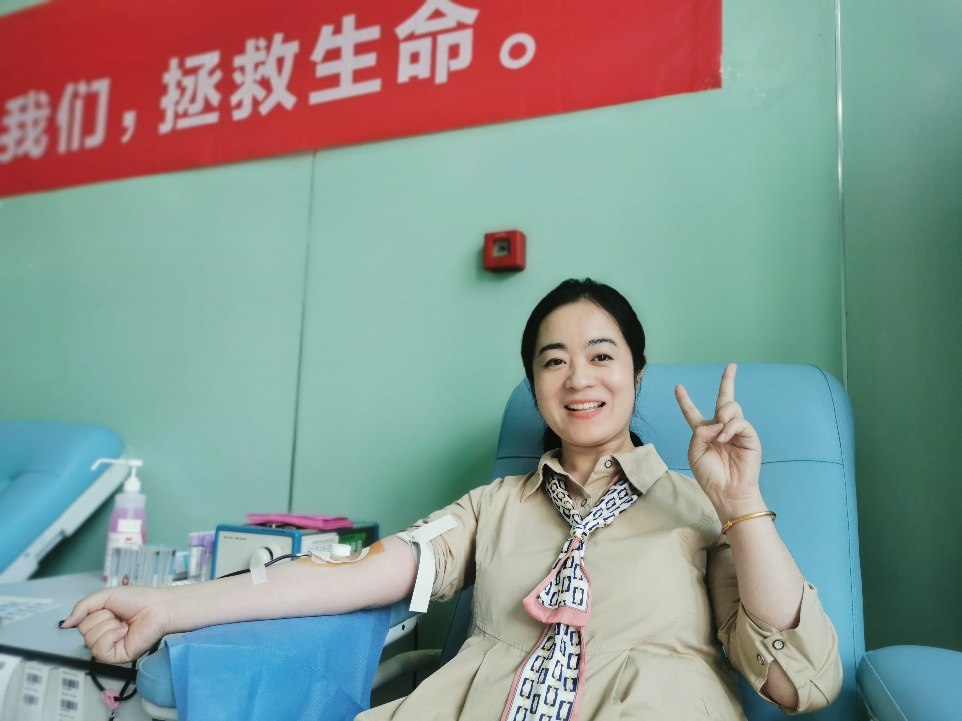 女队员黄月有点小紧张,因为上一次集体活动时没有检查通过,今天格外关注检测结果,当听说合格后,兴奋地说:“看看,我也可以和大家一起献血了!”