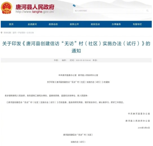 调查发现,早在2020年,河南省南阳市唐河县就出台过相关政策,据唐河县政府网站,唐河县2020年发布的《唐河县创建信访“无访”村(社区)实施办法(试行)》中称,凡户籍在“无访”村(社区)的考生中招考试第一志愿降分录取,第一年降3分,第二年降4分,连续三年从第三年起每年降5分。