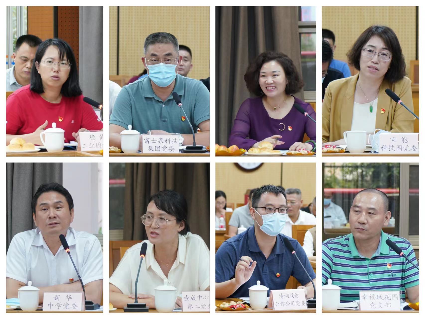 在加强党员管理、人才队伍建设、服务群众、引导居民参与治理、化解群众信访矛盾、加强社校联动、党建引领业务发展等方面进行积极分享、相互探讨、共同学习,现场研讨气氛热烈。