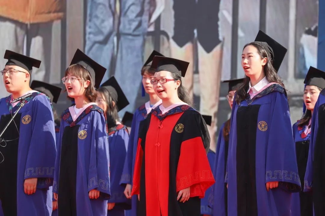 依依惜别时,歌声诉衷情。典礼开始前,全体毕业生合唱毕业歌《爱你》,歌声响彻全场,表达了毕业生深深的母校情、师生情、同窗情。