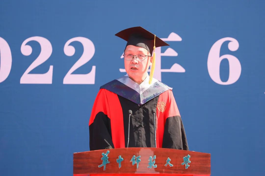 6月15日,华中师范大学2022年毕业典礼暨学位授予仪式在佑铭体育场举行。校党委书记赵凌云,校长郝芳华,校党委副书记查道林,副校长彭南生、夏立新,校党委副书记、纪委书记陈厚丰,副校长彭双阶、李鸿飞,校党委副书记陈迪明以及学校学术委员会代表、教师代表、各职能部门和学院党政负责人出席,共同见证全体2022届毕业生扬帆起航、踏上人生新征程的荣耀时刻。