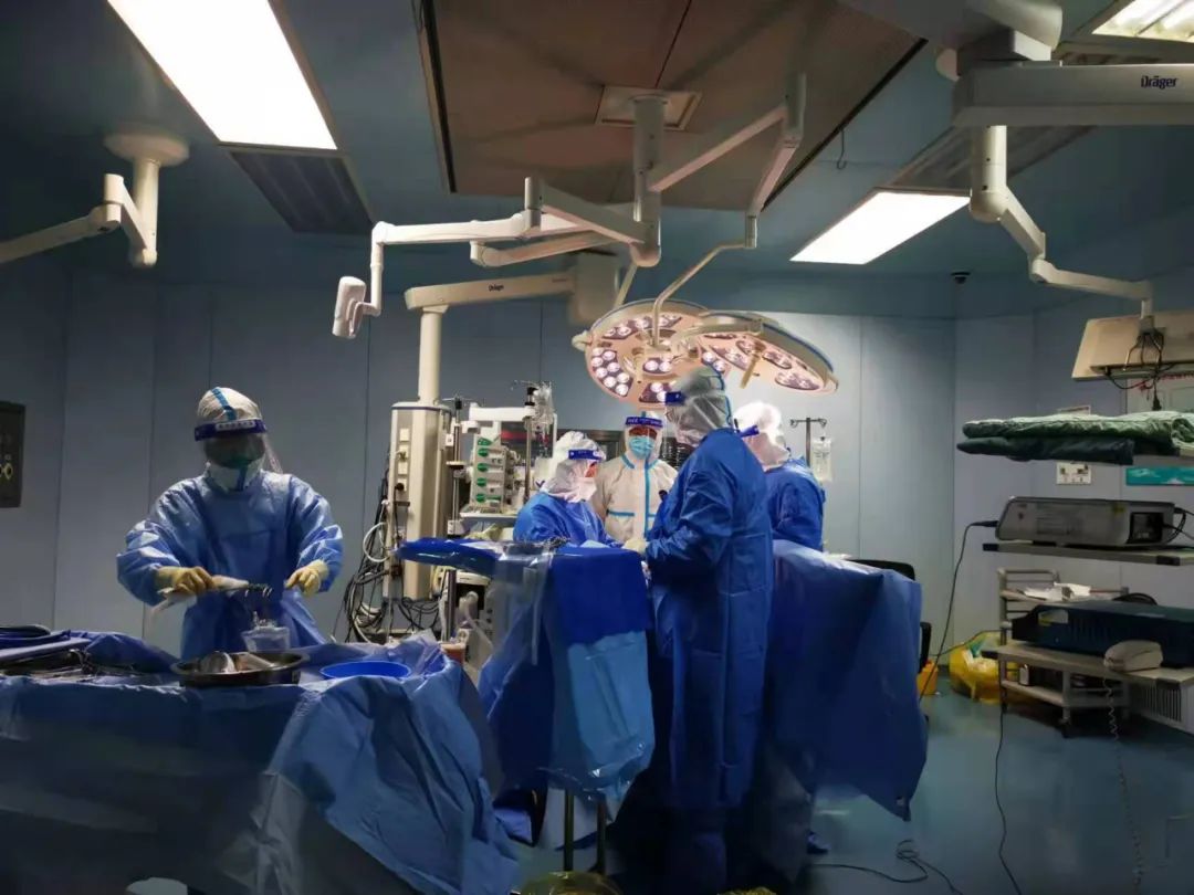 在指定的手术室内,医护及麻醉团队以最快的速度将器械、药物等准备完毕。麻醉医生、主刀医生、手术护士立即“变装”成一个个全副武装的“大白”。与此同时,患者从专用电梯被推送手术室,完成各项术前准备。整个过程仅仅用了30分钟。