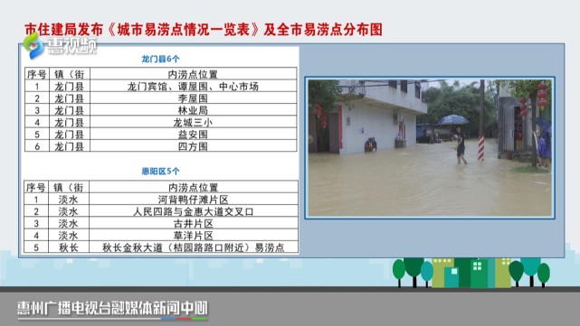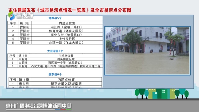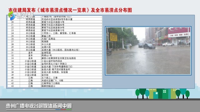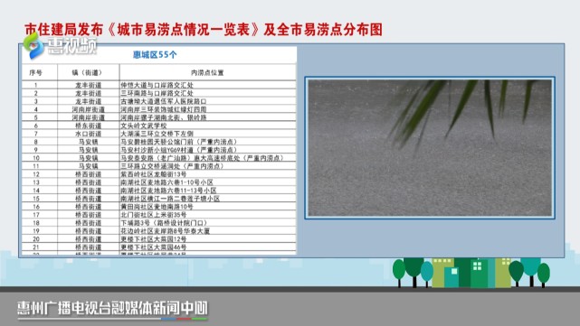 为做好应对强降雨期间引发的城乡内涝问题,惠州市住建局梳理形成了《城市易涝点情况一览表》及全市易涝点分布图,提醒相关部门和群众注意防范,确保城市安全度汛。