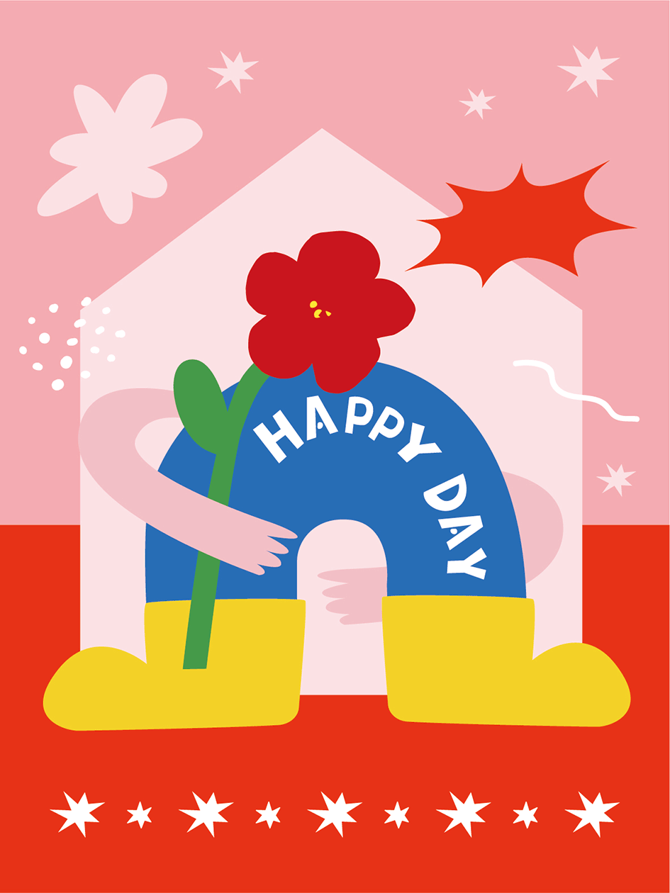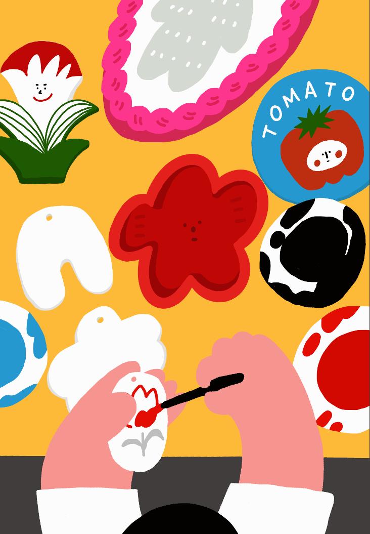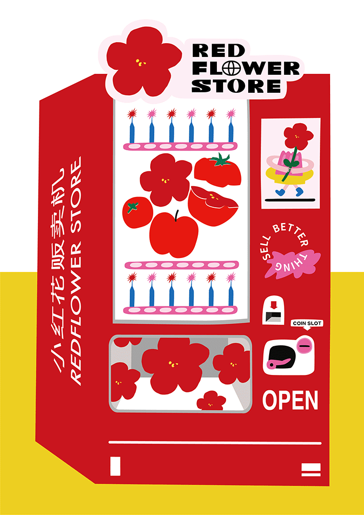 喜欢尝试和探索不同的表现形式和设计手法,不想给自己设限。大部分作品以植物和明亮的色彩感受为主,代表作:小红花贩卖机、花园里系列等。