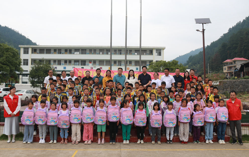 当天,由中华少年儿童慈善救助基金会护童圆梦计划项目组、湖南聚荣红色教育文化传播有限公司、湖南晴岱文化、湖南芳华农林科技发展有限公司、上海纯石咨询管理中心及电影《你笑得真好看》剧组联合开展的助学献爱心捐助赠书包活动,在城步苗族自治县白毛坪镇中心小学举行,学校一至六年级732名学生领到了爱心书包,脸上露出了灿烂的笑容。