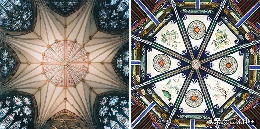 尤其是在古建筑里(无论是中式还是西式),向上看,你往往可以发现或金碧辉煌,或匠心独运的穹顶彩绘或特殊结构,它们往往是具有规律,中心对称的图形。