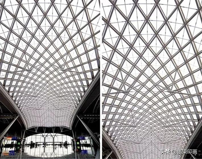 可以把这些重复结构全部放在一个平面上,让它们看起来比较相似或完全相同,形成数量、规模上的冲击力。