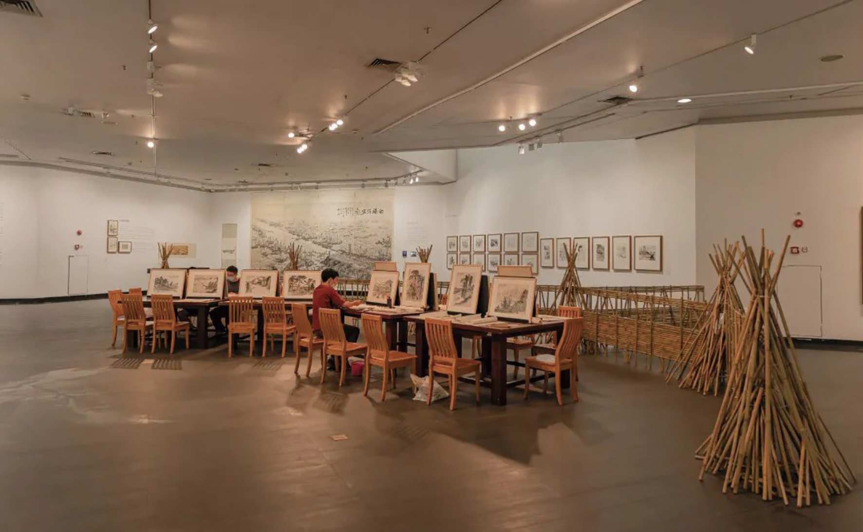 无论是完整地展示蒋兆和的《流民图》,还是各个时期关于敦煌壁画的临摹作品,抑或是展厅长条柜子中陈列的陈章绩和梁世雄的手稿、方楚雄收藏的名师来往书信,都能从一个侧面窥见前辈先生严谨的治学态度,也从侧面反映出在学科建设中前辈们是如何虚心向外求教。陈向阳说:“‘画学构建’所展现的内容与‘生活的力量’紧密相连,它是在保持原有的师资结构的前提下所做的新拓展,也就是当年的第一批研究生在关山月、黎雄才、杨之光和梁世雄的指导下迅速成为教学主体,同时又吸收了早年的优秀毕业生,如林丰俗、郝鹤君、周波等,主要展示的都是当年部分的研究生和本科生的毕业创作。从这些作品中除了关、黎两位先生,我们还可以看到杨之光、陈金章等先生的影响。同时也存在影响的另一面——创新,这正是杨之光先生所提出的‘基础要严、创作要宽’的具体实践。比如李劲堃院长研究生时期临摹的《溪山行旅图》可以说集中体现了教学中以宋画为中心的学术传统,而‘岭南画学’正是以此为基础发展下来的。‘岭南画学’这个概念也是上世纪90年代提出来的,后来也以此为题出版了《岭南画学丛书》,中国画学院将几位老先生的教学和创作生涯进行了文献整理,现在这个出版计划也重新启动,希望能够产生更大的社会作用。”