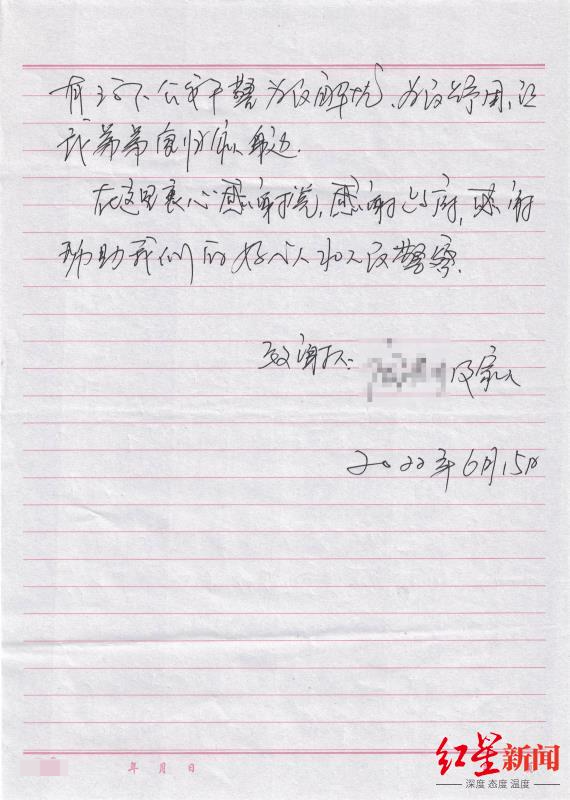 6月16日, 庞如钢一家为感谢民警的帮助,特意定制了一面锦旗并手写一封感谢信送到西充县仁和派出所。警方表示,庞如钢和其家人的血样已成功采样并送往鉴定,待鉴定结果出来后将为他补录身份信息。