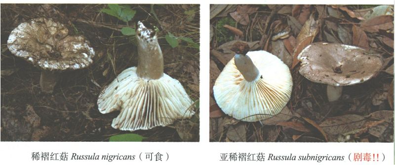 俗称“火炭菌”的亚稀褶红菇是云南中毒最严重的毒菌品种,已造成多人中毒、多人死亡事件,中毒病死率可达70%以上,而外形极为相似的密褶红菇、稀褶红菇却是食用菌,一般人很难区分,需要专业人员结合显微镜及分子生物学鉴定手段才能进行准确鉴别,建议这类菌子最好不要食用。